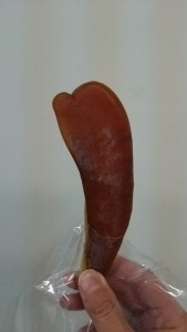 先端がくぼんでおり、細長いハート型のカラスミです。愛を感じます。